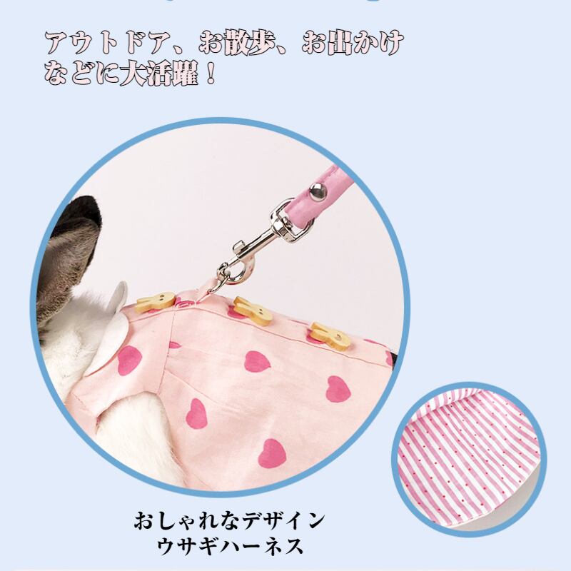 ペット用品 うさちゃんのお洋服 ストロベリー・パターン ウサギの服 ハート柄 ラビットウエア M-Lうさぎのハーネスウエア 苺 ピンク ラビット 取り付け簡単 カワイイ おしゃれ プレゼント 小型犬 アウトドア 小動物用 お散歩 お出かけ 旅行 | airastore