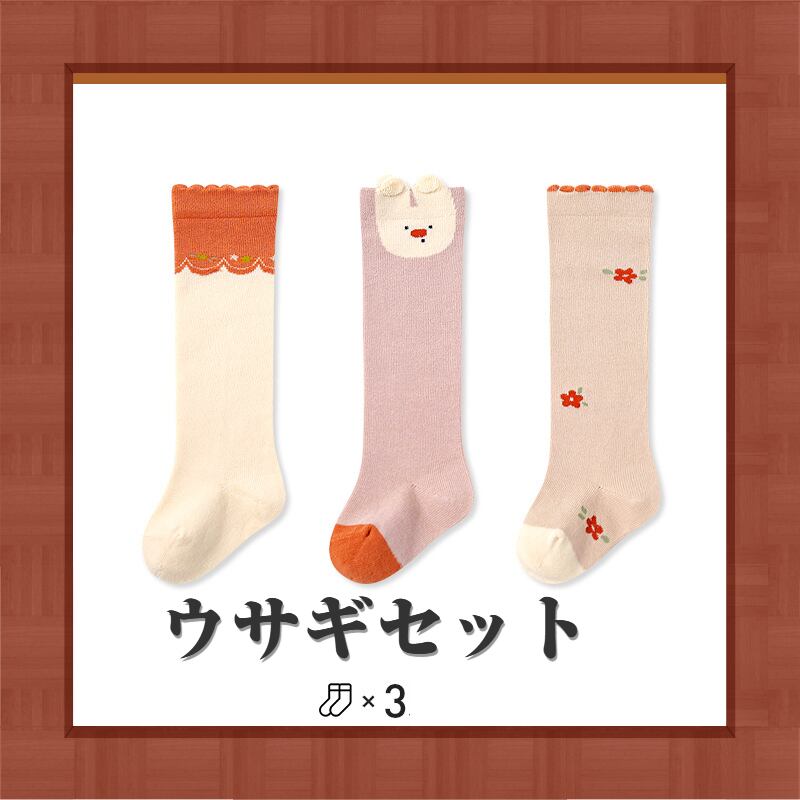 【3足セット】 ベビー用 ロングソックス 春秋 靴下 ベビー ソックス 赤ちゃん 子供用靴下 動物柄 女の子 男の子 キッズ 可愛い かわいい ロング丈 ハイソックス 春 秋 通気性 厚手 中厚手 コットン 締め付けない 通園 通学 保育園 幼稚園 | airastore