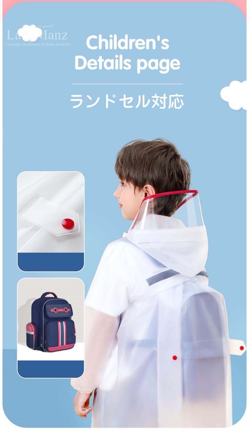 レインコート 雨具 防風 防水 梅雨対策 ランドセル対応 レインウェア 反射テープ付き かっぱ 合羽 ファスナー 反射材付き こども キッズ 子供用 通学リュック 通学 通園 撥水加工 小学生 中学生 高校生 通学用 女の子 男の子 | airastore