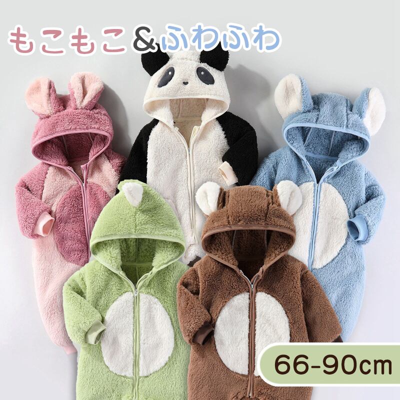 ベビー ロンパース カバーオール 長袖 新生児 ジャンプスーツ 着ぐるみ ベビー服 カーバオール 可愛い 防寒 フード付き 耳付き 厚手 柔らかい 秋冬 もこもこ あったか 裏ボア ボア パジャマ スリープウェア ふわふわ 暖かい 部屋着 おくるみ | airastore