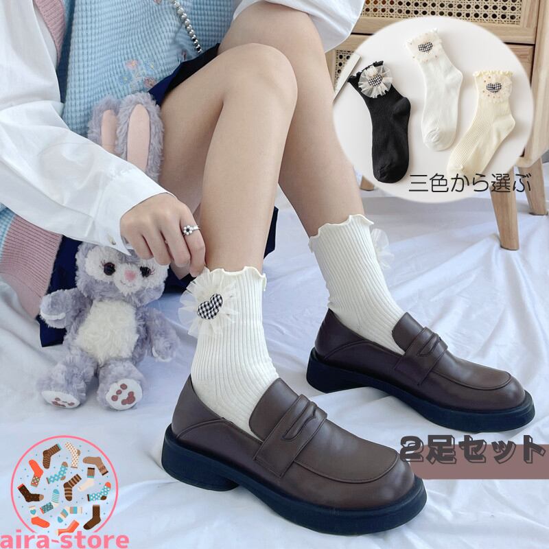 魅力満載! ハート柄 ソックス 2足セット 靴下 レディース ハート 黒 おしゃれ かわいい 白 フリル ブラック ロリータ 量産型 地雷系 くつ下 ホワイト レース 脱げない 姫系 結婚式 発表会 ハイソックス ゴスロリ 夏 ピンク 病みかわ ダンス 入学式