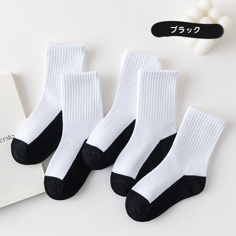 足底切り替え白靴下 ミドル丈 小~中 学生向け オールシーズン スクール 靴下 スポーツ用 男の子・女の子兼用 靴下 子供 男児 女児 キッズ
