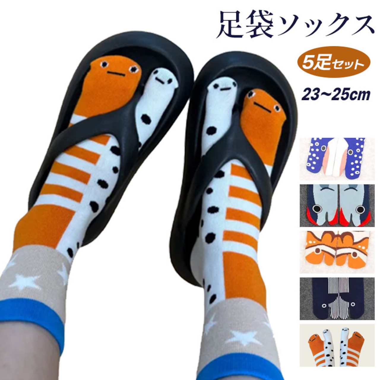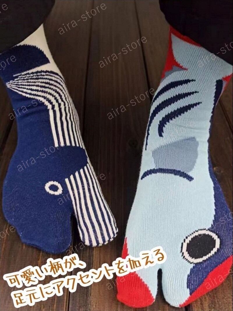 【4足セット】 2本指 足袋ソックス ユーモラスな海洋生物柄 深海クジラ サメ フグ ウナギ 青魚 カジュアル デイリー おしゃれ 可愛い 面白い ユーモア 履き心地 快適 男女兼用 足元 アクセント ギフト プレゼント おすすめ | airastore
