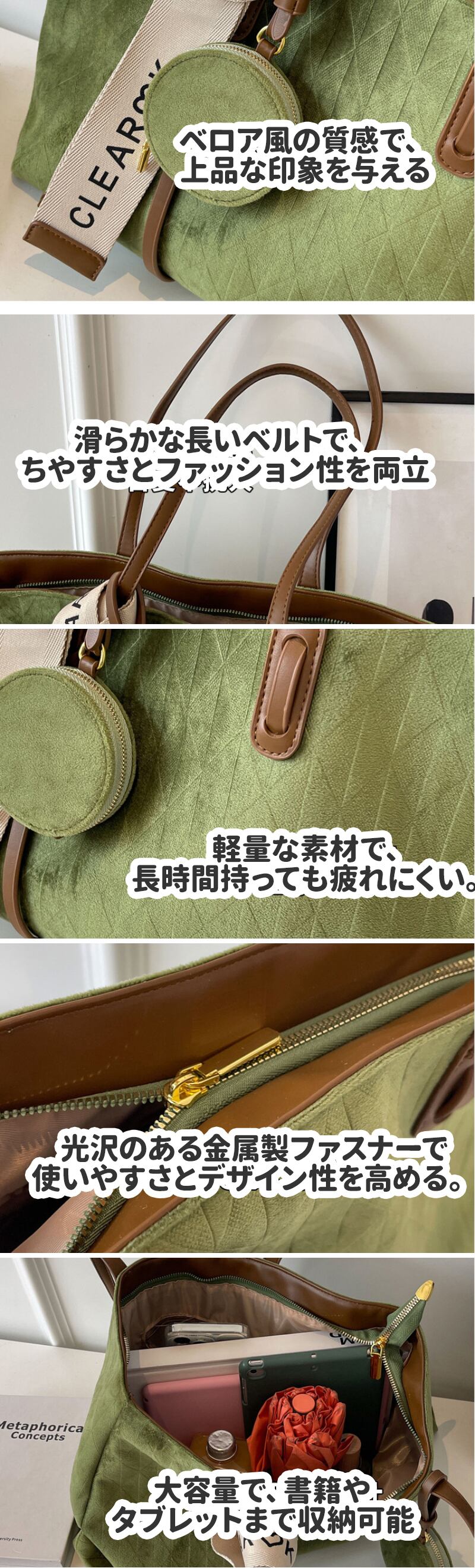 選べる4色 レディース トートバッグ 大容量 ブラック グリーン ベージュ カーキ ショルダーバッグ ハンドバッグ ミニポーチ付き お洒落 会社 通学 小物 上品 韓国風 ホワイト ブラック グリーン 大きい マザーバッグ 春夏 秋冬 肩掛け 可愛い | airastore