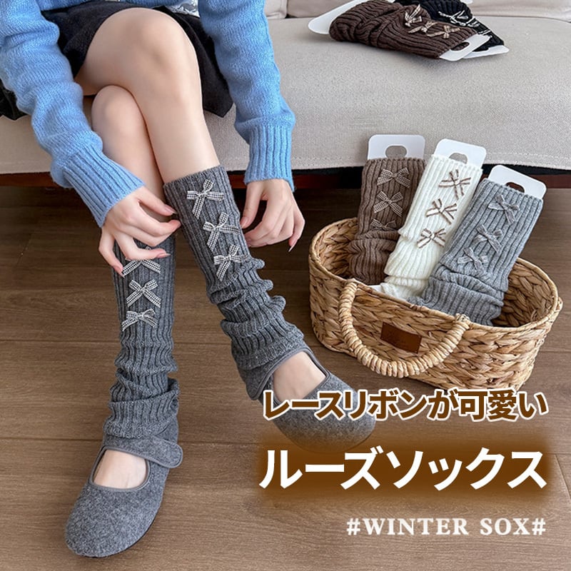 レッグウォーマー 秋冬 バレエ風 リボン ププ ソックス 冷え対策 保温 防寒 足首ウォーマー 冷え取り レディース 学生 かわいい ルーズソックス風 ニット ソックス レッグ 防寒対策 冷え防止 通学 足首 女性 冬用