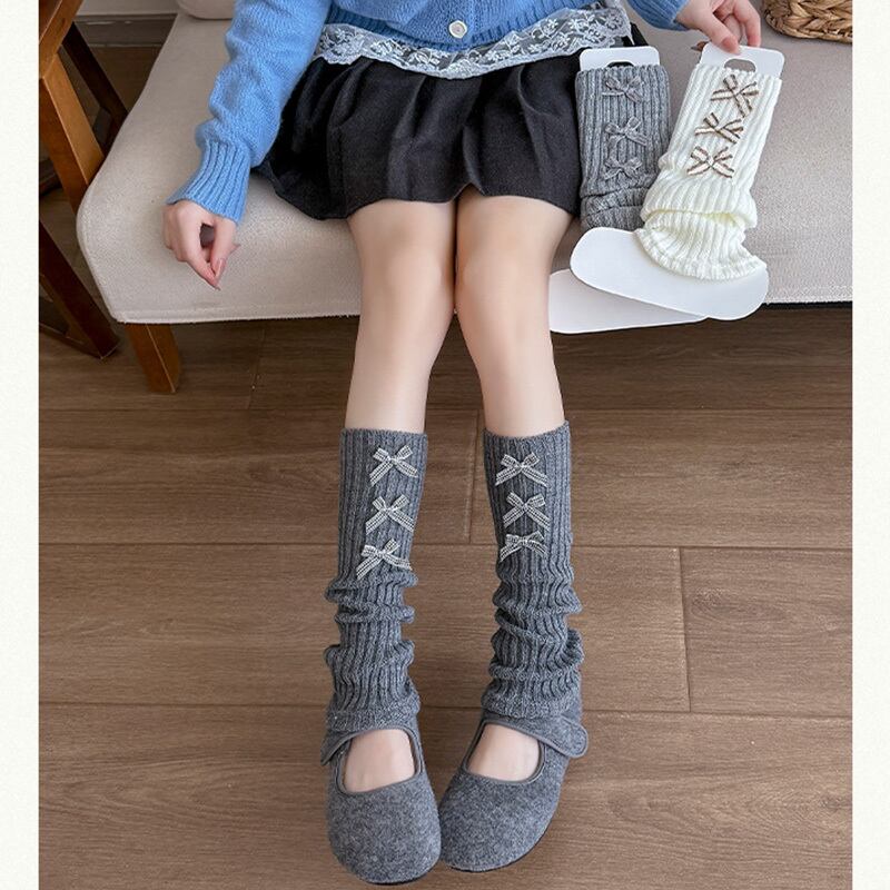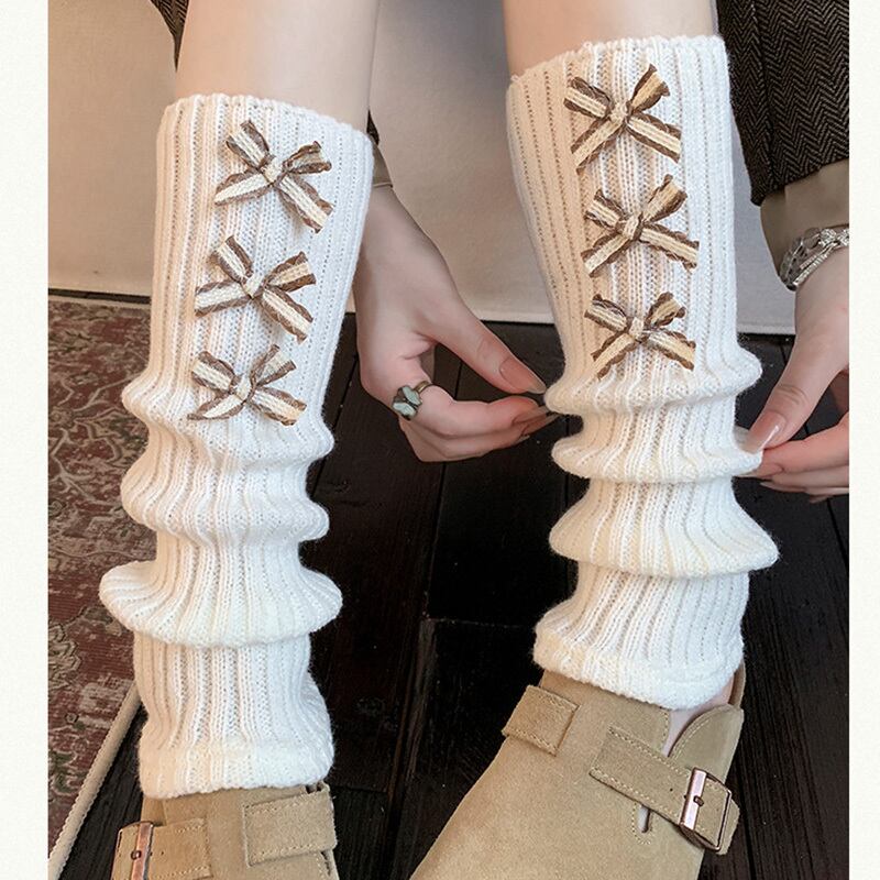 ふんわりニットに蝶結びが愛らしいレッグウォーマー