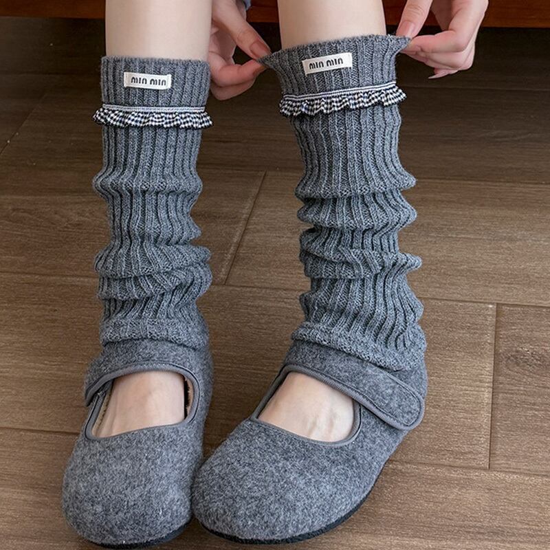 レッグウォーマー ニット リブ編み チェック フリル ホワイト ブラック グレー ブラウン 冷え対策 保温 防寒 足首ウォーマー 冷え取り レディース 学生 可愛い 上品 おしゃれ ルーズソックス風 ニット ソックス レッグ 防寒対策 冷え防止 通学 女性 冬用