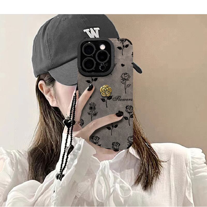 スマホケース ローズパターン ストラップ付き アイフォンケース iPhone 17 Air PRO MAX Plus iphone17 16 15 14 13 12 11 携帯カバー 傷防止 汚れ防止 かわいい 韓国風 オシャレ 軽量 脱着簡単 INS風 大人気