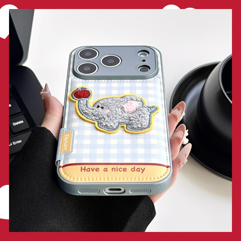 象モチーフ チェック柄 スマホケース iPhone17/16/15 全機種対応 アイフォンケース iPhone 17 Air PRO MAX Plus iphone17 16 15 14 13 12 11 携帯カバー 傷防止 汚れ防止 かわいい 韓国風 オシャレ 軽量 脱着簡単 INS風 大人気