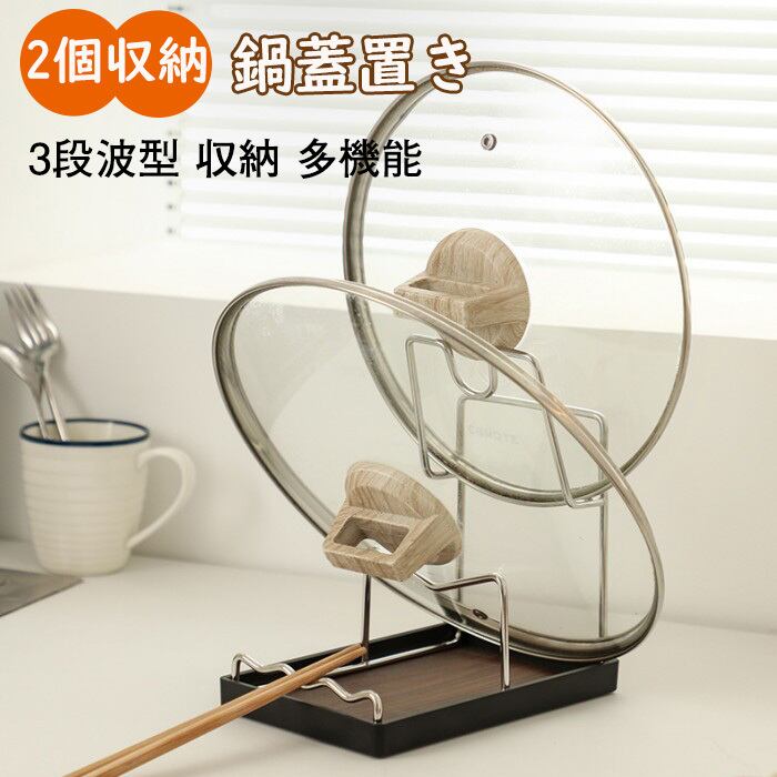 鍋蓋スタンド お玉スタンド 水切りトレー付き キッチンツールスタンド 卓上 マルチスタンド 鍋ふた 箸 置き 3in1 多機能 収納ラック まな板立て レシピスタンド ステンレス 錆びにくい おしゃれ キッチン 台所 ちょい置き コンパクト 省スペース