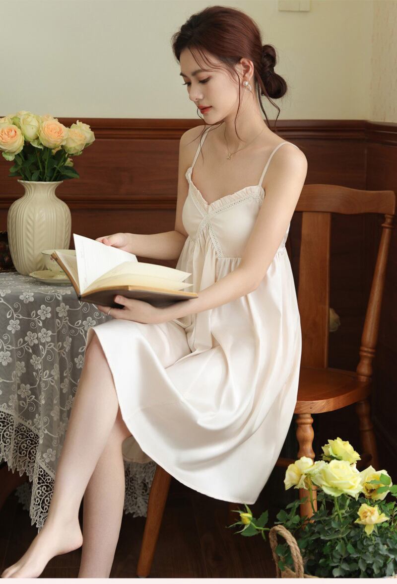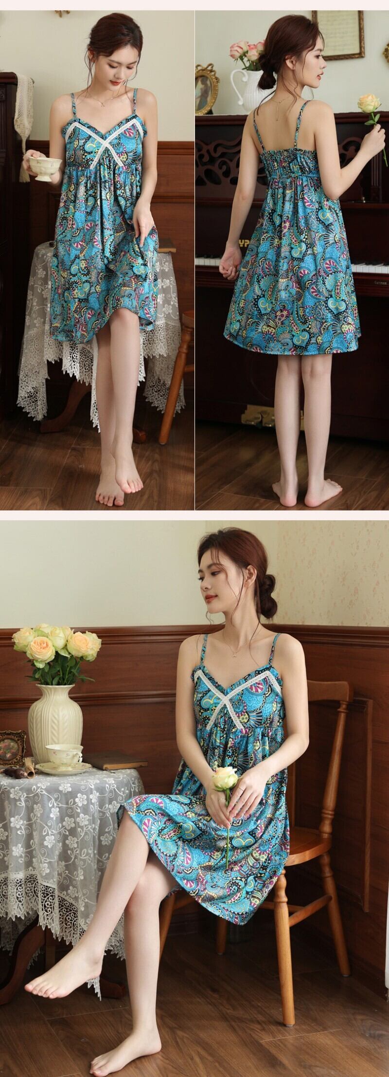 ルームウェア 胸パッド付き ネグリジェ パジャマ キャミソール ワンピース レディース 夏 接触冷感 ショート丈 ロング丈 花柄 無地 レース フリル マタニティ 部屋着 ナイトウェア スリップ ランジェリー 涼しい ツルツル 高級感 セクシー 姫系 Aライン