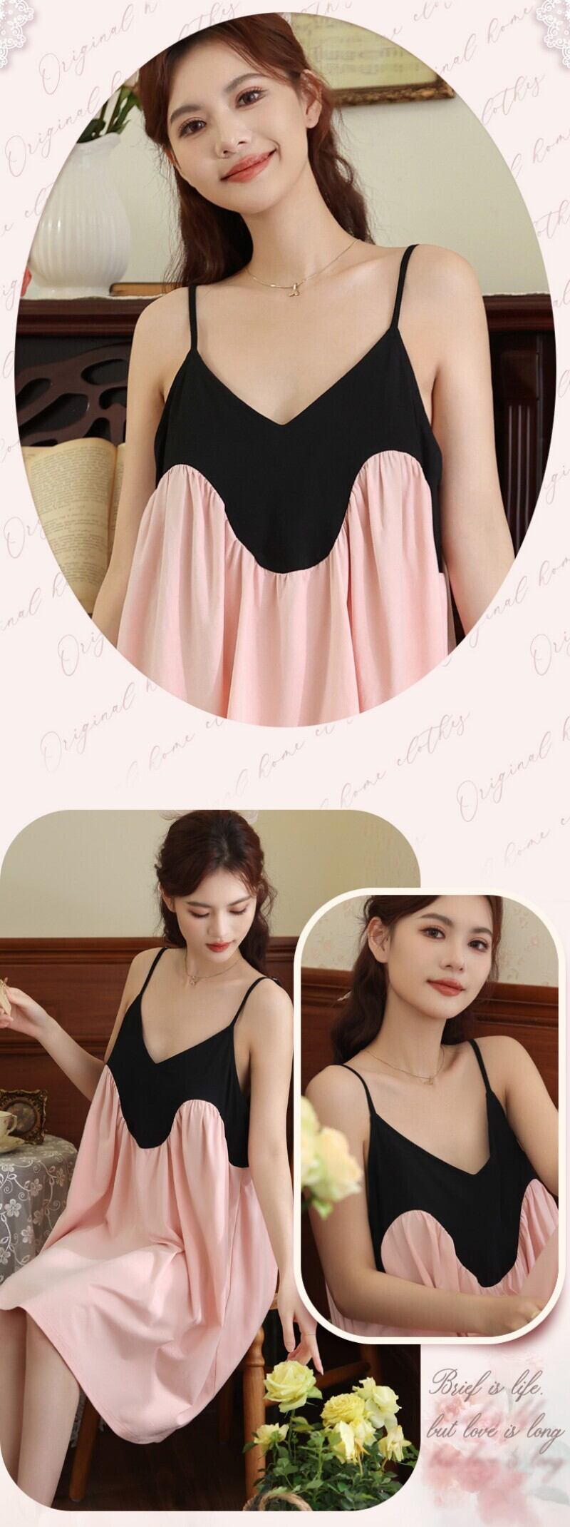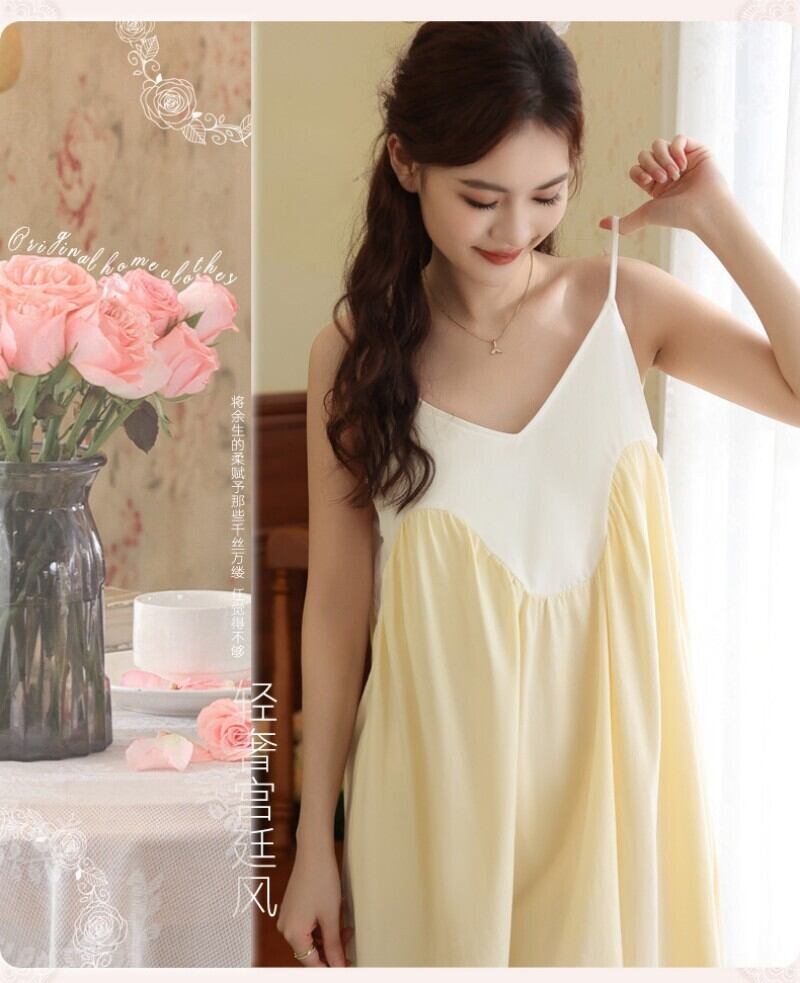 ルームウェア パジャマ ワンピース キャミソール カップ付き コットン95% レディース 夏 ショート丈 膝上 バイカラー 配色 切り替え Aライン キャミワンピ 部屋着 ナイトウェア スリップ ネグリジェ ゆったり 体型カバー マタニティ 妊婦 旅行 お泊まり