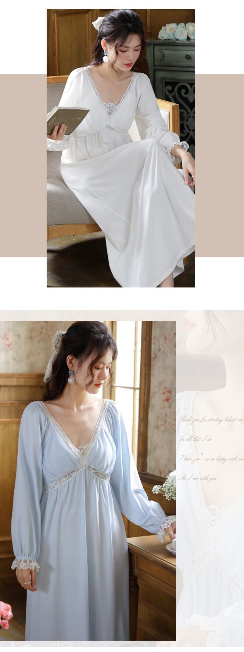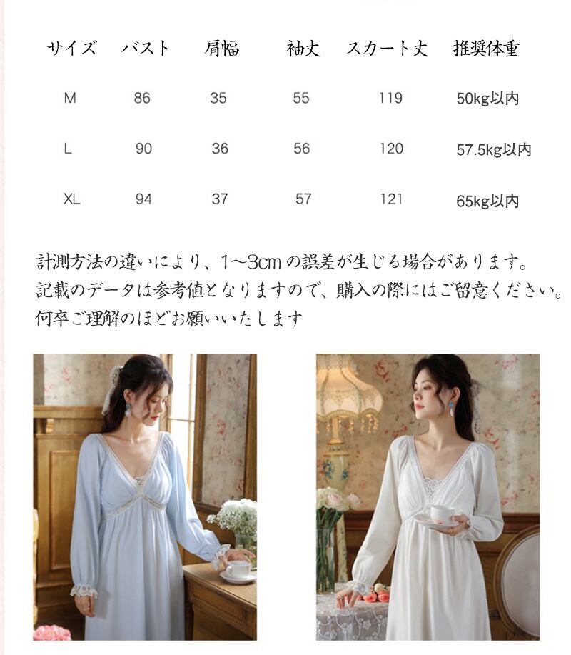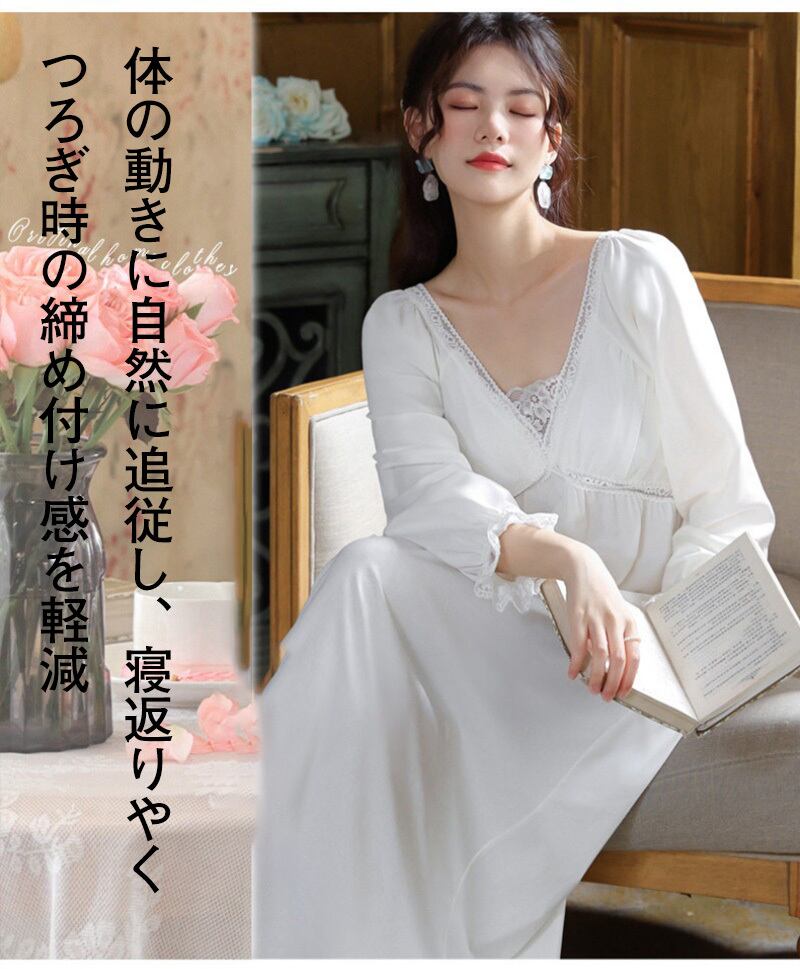 ルームウェア ネグリジェ パジャマ ワンピース 長袖 カップ付き 胸パッド付き レース Vネック マキシ丈 ロング丈 部屋着 ナイトウェア レディース 春 秋 冬 柔らかい 伸縮性 姫系 エレガント ゆったり 体型カバー マタニティ 妊婦 授乳