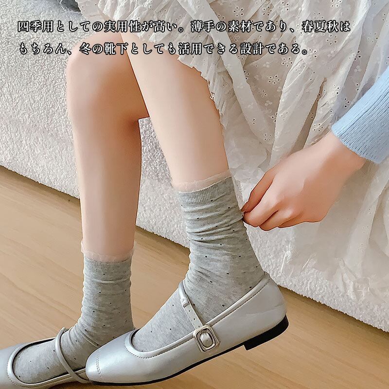 靴下 レディース ソックス 3足セット シースルー メッシュ ドット 水玉 チュール フリル クルーソックス 薄手 通気性 透け感 おしゃれ かわいい バレエ風 ガーリー 韓国 ファッション 黒 白 青 グレー ベージュ 夏 春 秋 涼しい 重ね履き