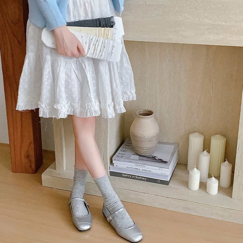透ける足元に、ときめきを纏う。 チュールフリルと繊細ドットが織りなす、儚げで愛らしいバレエコアスタイル。
