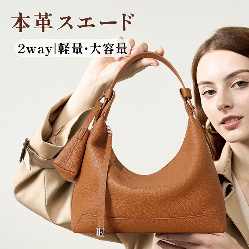 ショルダーバッグ レディース 本革 牛革 ホーボーバッグ ショルダー 斜めがけ 肩掛け 2way バケツバッグ 大容量 柔らかい 軽量 シンプル カジュアル 通勤 通学 おしゃれ 大人可愛い ミニポーチ付き コインケース レザー 鞄 かばん ブラウン ブラック ピンク
