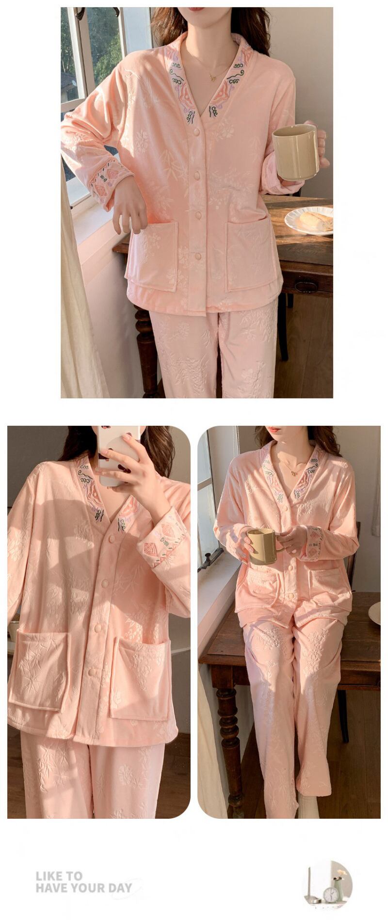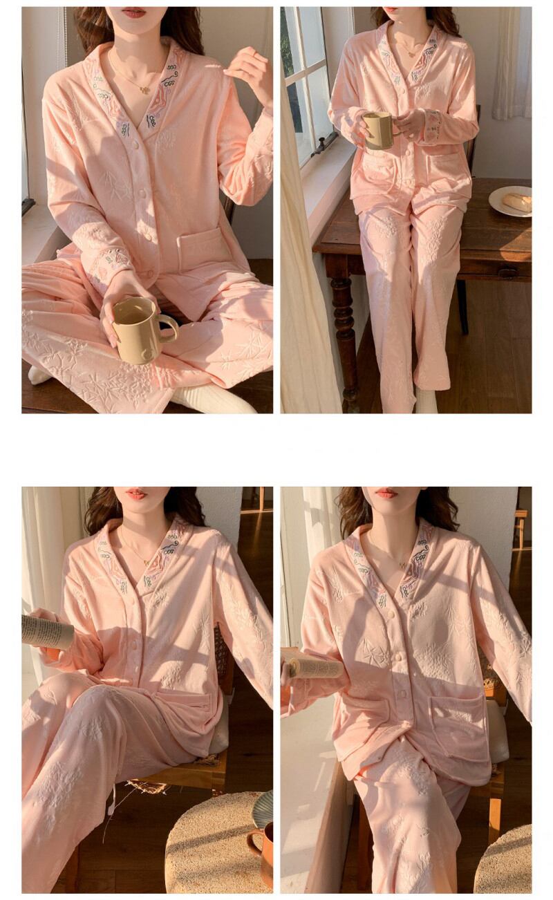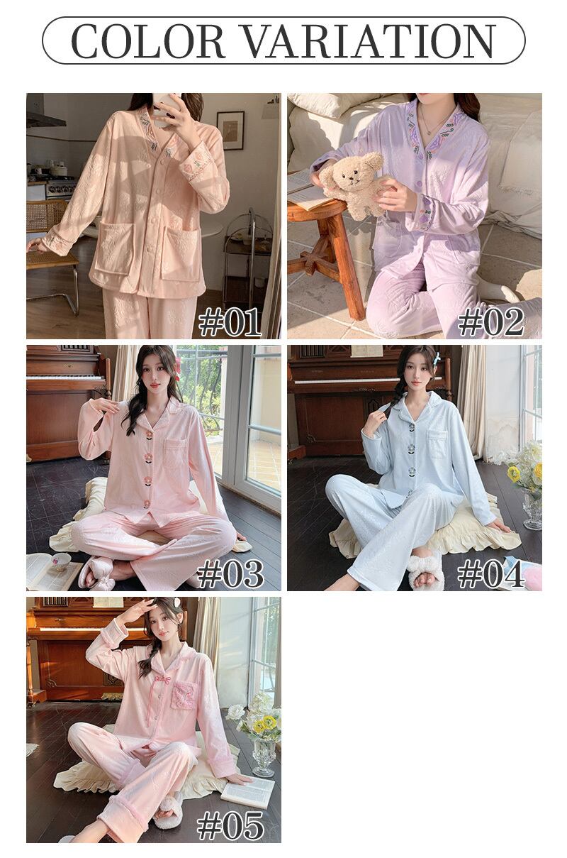パジャマ レディース ルームウェア 上下セット ベルベット 秋 冬 暖かい 薄手 裏起毛 長袖 前開き Vネック 刺繍 花柄 ポケット付き 高級感 おしゃれ かわいい 大人 上品 部屋着 寝巻き セットアップ 暖房対策 防寒 M L XL 2XL ピンク パープル ブルー