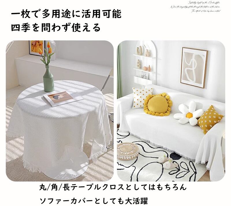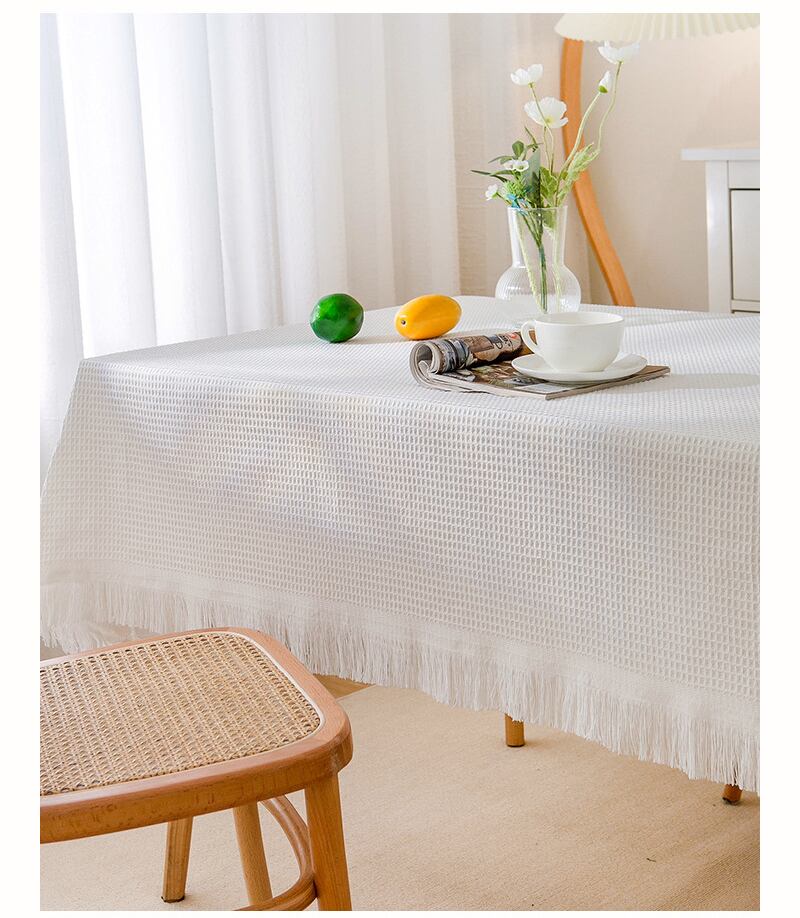 テーブルクロス コットン 北欧 フレンチ カントリー 長方形 正方形 おしゃれ 白 クリーム アイボリー フリンジ タッセル 無地 食卓カバー マルチカバー 柔らかい 雰囲気作り 90 130 180 230 260 300 340 380
