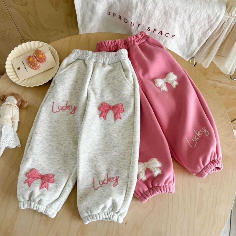 秋冬 キッズ パンツ 裏起毛 スウェットパンツ ロングパンツ カジュアル 厚手 冬物 リボン 子供 ベビー 保温 ズボン 伸縮性 ゆったり 快適 着心地が良い 合わせやすい 柔らかい デイリー リラックス おしゃれ 女の子 韓国 子供服 小学校