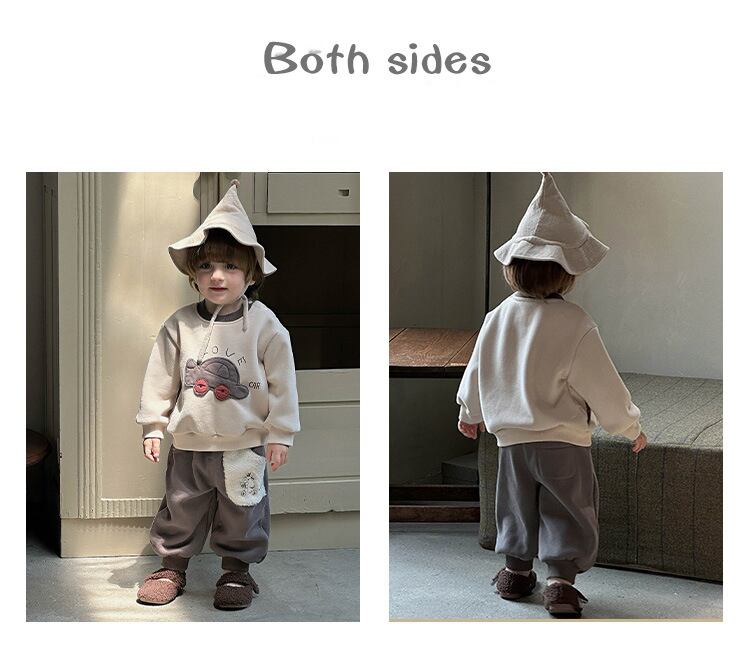 【2点セット】上下セット キッズ 秋冬 裏起毛 スウェット 子供 女の子 男の子 プルオーバー クルーネック トップス 長袖 スウェットパンツ ロングパンツ ベビー かわいい キュート 柔らかい 保暖 保温 あったか 子供服 快適 着心地が良い