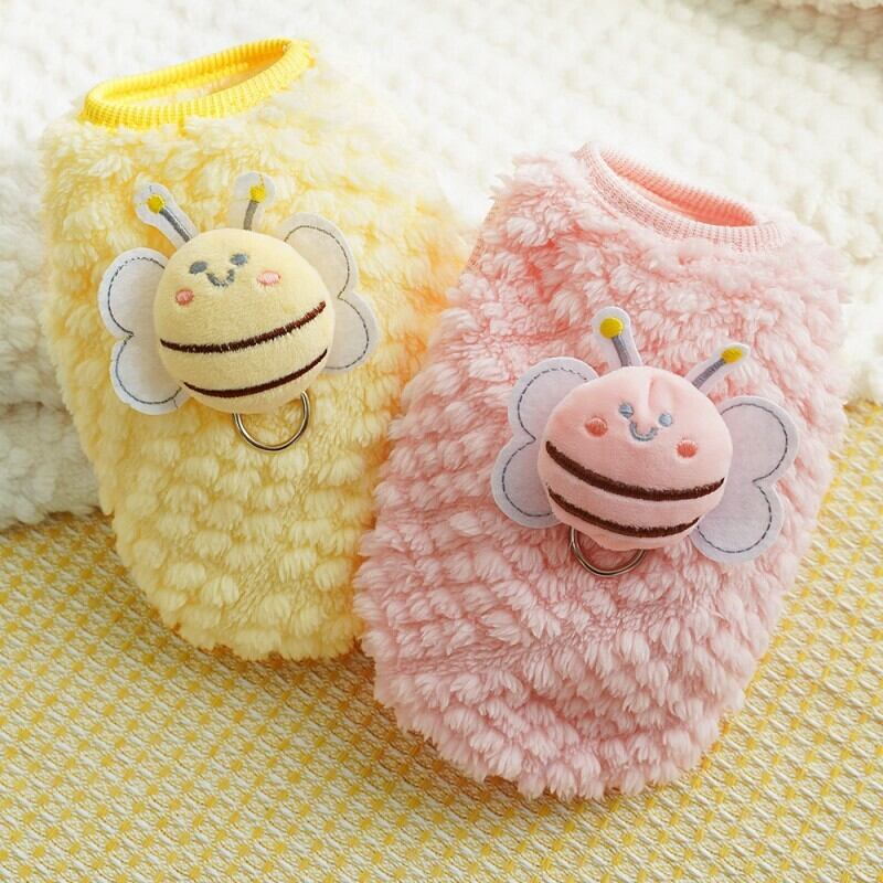 秋冬 ミツバチ付き ペットウェア ペット服 犬服 猫服 ベスト 小型犬 中型犬 厚手 着脱簡単 かわいい 快適 散歩 お出掛け おしゃれ ペットグッズ モコモコ ふわふわ 柔らかい ソフト 保温 暖かい 防寒 着脱やすい 0.5-7kg