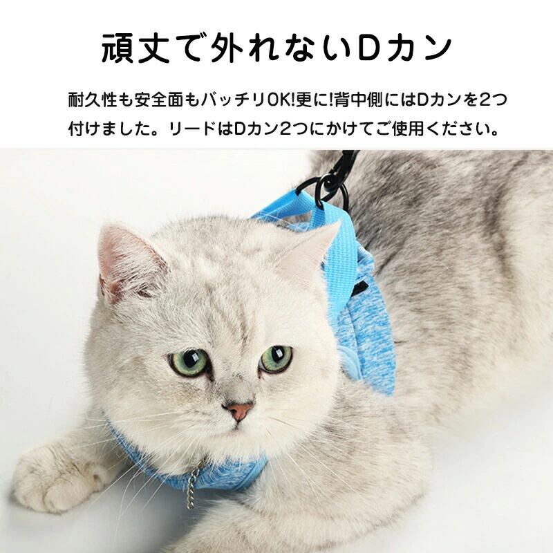 猫 猫用 ハーネス リード 胴輪 犬猫兼用 ねこ ネコ キャット 小型犬 中型犬 ソフト胸あて リード付き 抜けない ソフトハーネス 超軽量 調節可能 簡単脱着 マジックテープで装着 お散歩用 お出かけ 外出 通院 災害 避難 ペット服