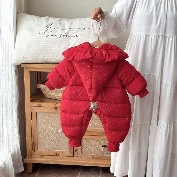 秋冬 キルト 裏起毛 カバーオール 厚手 防寒 保温 フード付き ベビー服 裏起毛 長袖 ロンパース 女の子 おしゃれ お祝い お宮参り お祝い着 誕生日 初誕生祝い お出かけ かわいい 記念写真 プレゼント ベビーロンパース 新生児 前開き A類