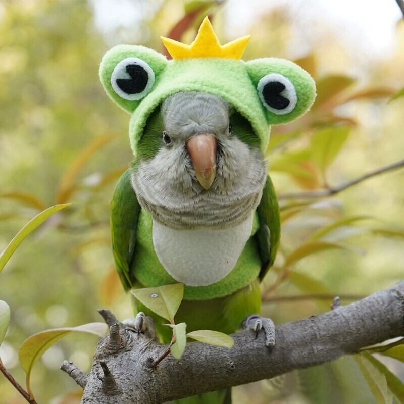 インコウェア 秋冬 カジュアル 防寒 保温 フード付き カエルコスチューム ペット 小動物 カラーコンビ 柔らかい ソフト 通気性 厚手 マジックテープ 着脱簡単 付け外し簡単 かわいい おしゃれ 室内 お出かけ 記念写真 プレゼント 調整可能