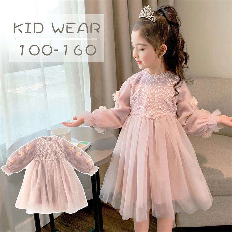 長袖 春秋 人気 子供服 ワンピース 子供 ドレス 女の子 キッズ 秋物 春物 フォーマルドレス ジュニア 七五三 ピンク レース チュール ガールズ お受験 入園式 可愛い 通学 演奏会 膝丈 お揃い こどもの日 卒業式 結婚式 発表会 入学式