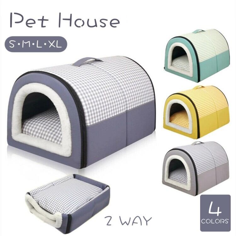 半ドーム型 ペットベッド ペットハウス 冬用 厚手 防寒 保温 年間使える 取り外し洗える カバー丸洗いOK 中小型犬 ドーム型 ベッド 犬ベッド 洗える 2WAY 折りたたみ クッション外す可能 四季通用 両用ベット 犬猫兼用 猫ベッド 柔らかい 快適
