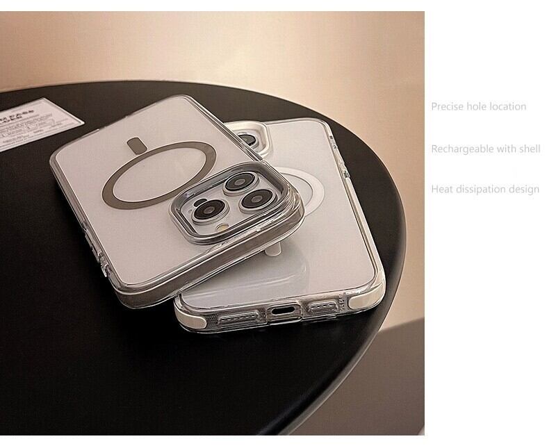 マグネット内蔵のiPhoneケースは、純色のクリアカラーで機体の美しさをそのままに引き立てる。無地でシンプル、しかし確かな高級感を放つ一枚。
