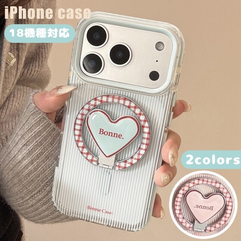 マグネット 携帯ケース スマホケース iPhoneケース ハート型マグネットスタンド ストライプ チェック iPhone17ProMax iPhone17 iPhone16 耐衝撃 磁石 ワイヤレス充電 18機種 多機種対応 握りやすさ 普段使い 衝撃吸収 丈夫 長持ち 傷防止 おしゃれ 大人