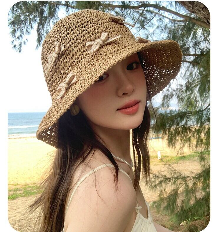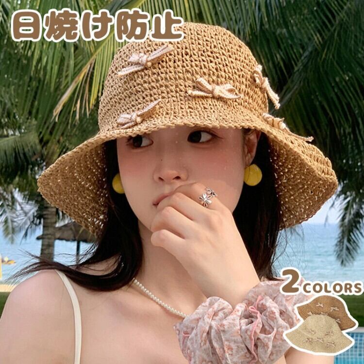 春夏 レディース ハット リボン 麦わら帽子 ドーム型 広いつば バケットハット UVカット 日焼け防止 日よけ帽子 韓国風 小顔効果 おしゃれ かわいい 通勤 ビーチ 通気性 折りたたみ カジュアル 麦わらハット サンハット 大人 海 普段使い