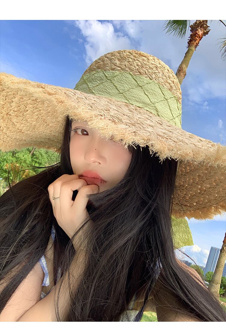 春夏 麦わら帽子 レディース ハット 夏 ラフィアハット リボン&フリンジ 広いつば UVカット ビーチ サンハット リボンテープ 日よけ 日焼け防止 帽子 合わせやすい 日よけ帽子 韓国風 小顔効果 おしゃれ かわいい 通勤 通気性 カジュアル 大人