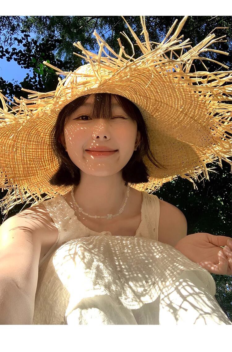 夏のお出かけやバカンスにぴったりな、ラフィアの広いつば帽子。フリンジデザインが上品な雰囲気を演出し、UVカットでしっかり日よけ。