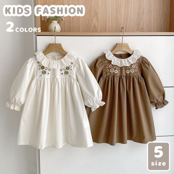 こども ワンピース 花柄 カジュアルワンピース 長袖 お姫様 ドレス 女の子 レースワンピース フォーマル 入園式 入学式 キッズ フリル 襟付き 子ども服 可愛い セレモニー 結婚式 春夏 Aライン 通園 普段着 おでかけ コットンワンピース