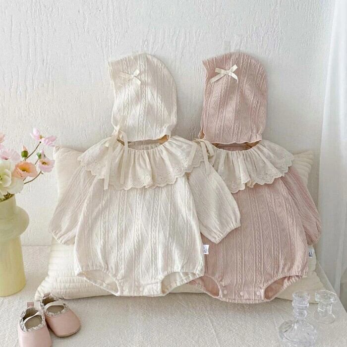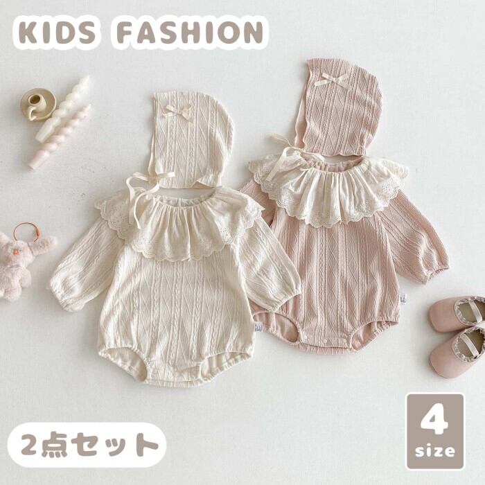 【2点セット】ベビー ロンパースドレス 女の子 ベビー服 新生児 ロンパース ワンピース フード付き お姫様 かわいい 襟 赤ちゃん 夏 長袖ロンパース レース 子供服 お部屋着 出産祝い ギフト バースデー 結婚式 1歳 誕生日 服 百日 プレゼント