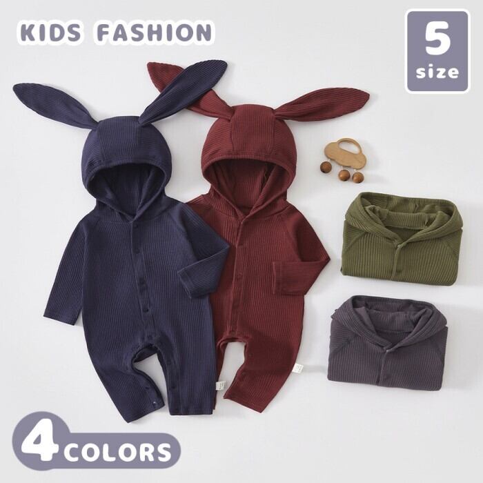 ロンパース 前開き ベビー 長袖 うさぎ うさぎ耳帽子 無地 綿 長袖連体服 柔らかい ふわふわ 可愛い 通気性 肌触り 男の子 女の子 幼児 春秋 普段着 贈り物 長ズボン 100日祝い 防風帽子付き うさぎ耳 ちゃん 着ぐるみ プレゼント おしゃれ カジュアル