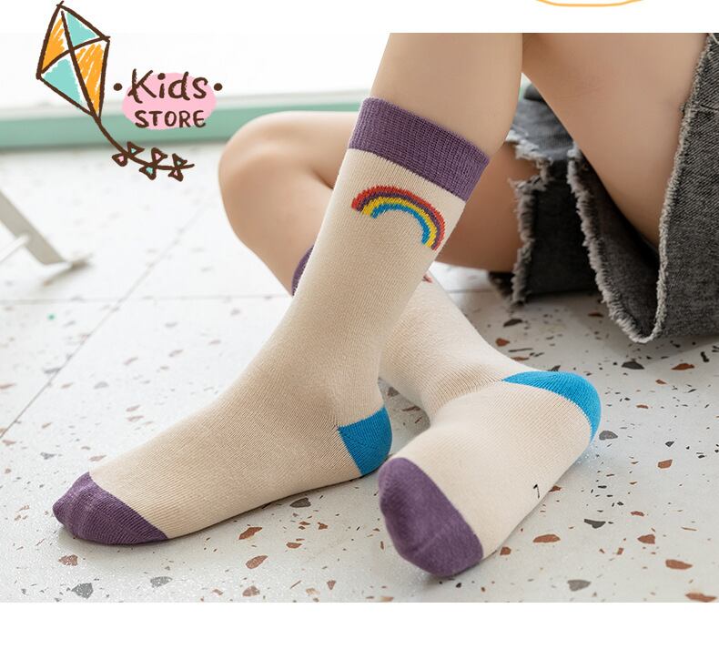 【4足セット】秋冬 ソックス 靴下 子供 綿ソックス 虹色 カラーブロック 綿 コットン ミディアム丈 Aクラス 通気性 男の子 女の子 伸縮性 柔らかい 履き心地 快適 可愛い 小学校 お遊戯会 運動会 通園 通学 入学準備 新入学 お出かけ 通学 ファッション | airastore