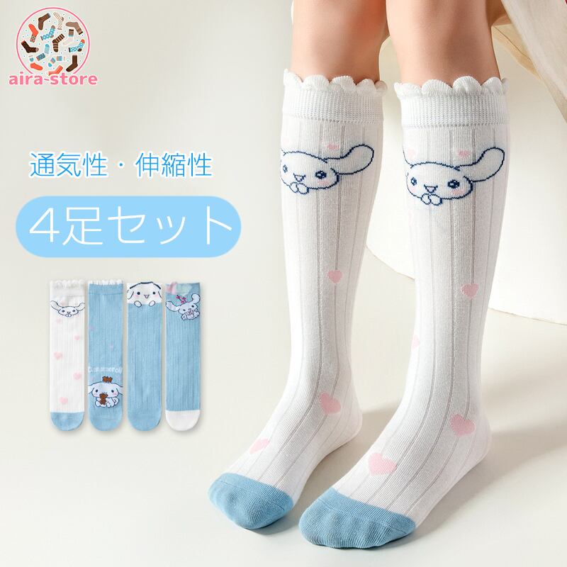 【4足セット】春夏 靴下 キッズ ふくらはぎ靴下 ハイソックス ロングソックス 子供 通気性 柔らかい Aクラス 品質 コットン 可愛い キュート キャラクター パターン 女の子 伸縮性 伸びる 入学式 卒業式 発表会 コンクール 卒園式 入園式 | airastore