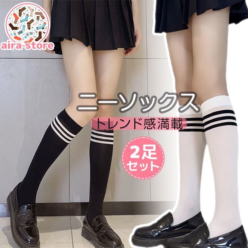 【2足セット】制服にもぴったり!通勤 通学 薄手 ソックス ハイソックス スクールソックス レディース 靴下 ストッキング ニーハイソックス 学生 高校生 黒 白 かわいい 小物 女子高生 ひざ下 制服 女の子 おしゃれ スクール 送料無料 | airastore