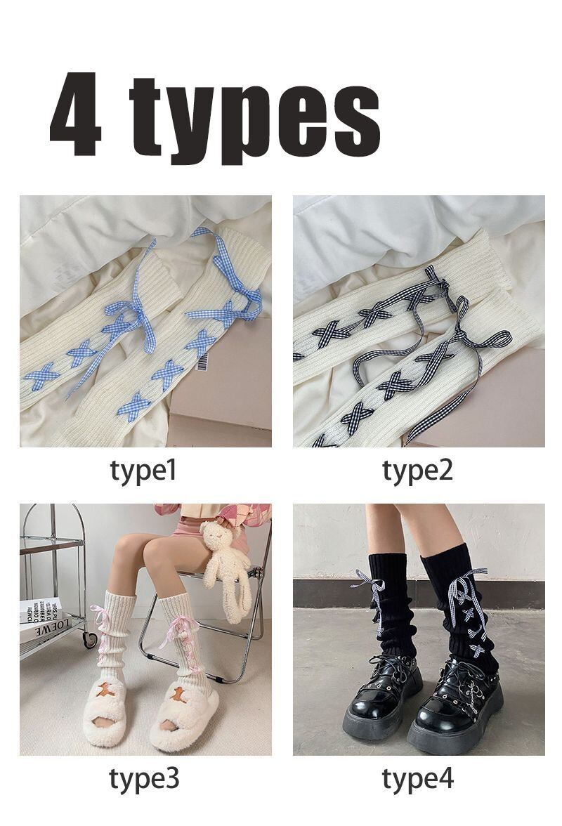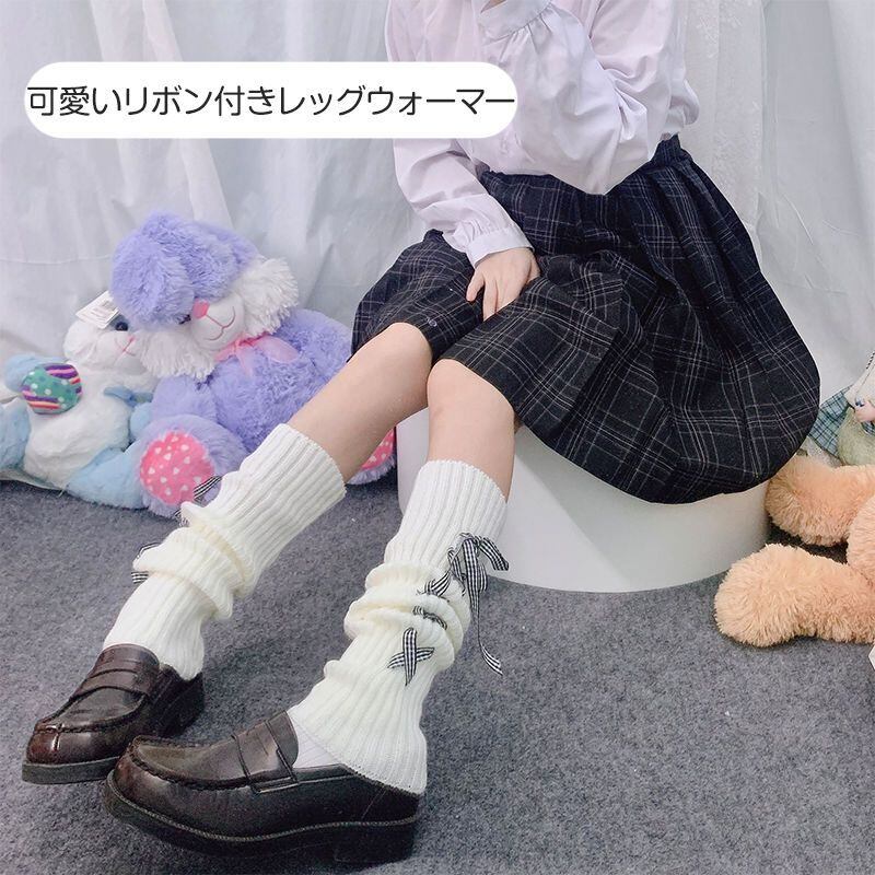 【3枚セット】 可愛い ロリータ風 レッグウォーマー ソックス ロングソックス リボン付き 靴下 保温 足首ウォーマー ガーリー 通学 学生 冷え対策 足元 通勤 冷え性 冷房対策 ハイソックス ルーズソックス ストライプ ブラック ホワイト | airastore