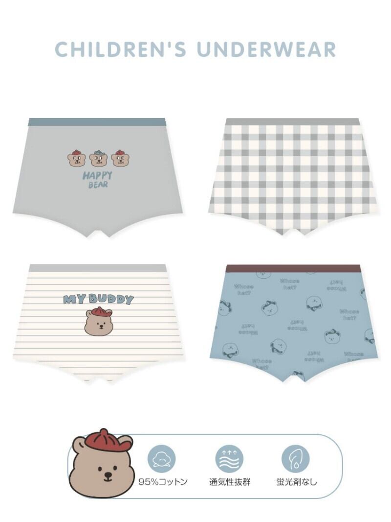 【4枚セット 】男の子 ボクサーパンツ 可愛いデザイン キッズ 子供 下着 ボーイズ 肌着 恐竜 キャラクター 通園 子供服 オールシーズン 通学 男児 ショーツ プリント 綿 グレー 保育園 ボクサーブリーフ インナー キッズパンツ | airastore