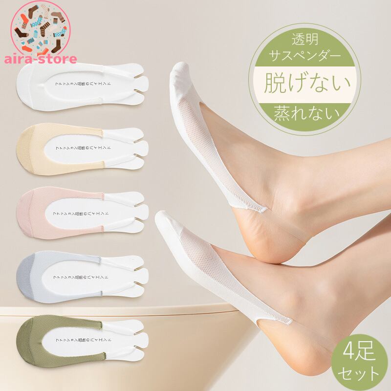 【4足セット】送料無料!透明 サスペンダー 抗菌 吸汗 カジュアル ソックス 歩きやすい防臭 靴下 フットカバー レディース 深履き 無地 脱げない おしゃれ シンプル 滑り止め 脱げにくい 送料無料 薄手 レディースソックス 綿混 | airastore