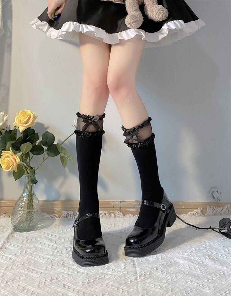 【2足セット】可愛いシアーリボンソックス コスプレ アウトドア ソックス スクールソックス ハイカット ハイソックス レディース 靴下 くつした ストッキング 制服 女の子 おしゃれ 美脚 通勤 原宿風 ゴスロリ フリル ガーリー 可愛い 地雷系 量産型 | airastore
