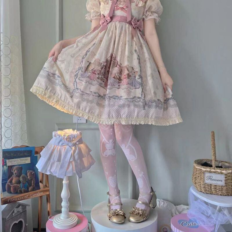 クマ刺繍のジャカード織りニーハイソックスで、ロリータファッションを華やかに!"
