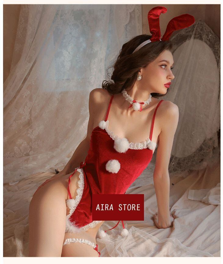 4点セット バニーガール ランジェリー バニーちゃん 可愛い セクシー 制服 メイド コスプレ 仮装 イベント コスチューム 下着 ベビードール クリスマス エッチ 穴開き エロカワ 切り替え あざとい マンネリ解消 もこもこ 絶対可愛い エロ下着 | airastore