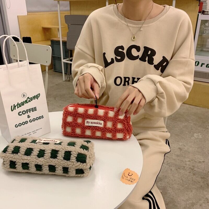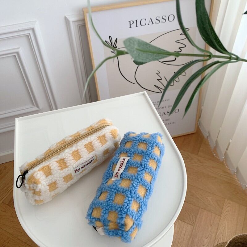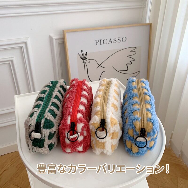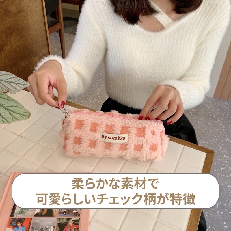筆箱 ポーチ チェック柄 ふわふわ おしゃれ ペンケース 小物入れ 小さめ レディース コーデュロイ マルチポーチ 大容量 大人 通勤 通学 スリム 筆入れ 文房具収納 コスメポーチ | airastore