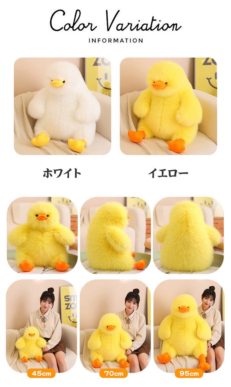【ふわふわ抱き心地】ダックぬいぐるみ|♡ 2カラー選べる 3サイズ展開 ダックぬいぐるみ 可愛い イエロー ホワイト 肌触り抜群 ふわふわ ボリューム満点 45cm 70cm 95cm 快適な手触り ギフト 誕生日 プレゼント 友達 おもちゃ インテリア 柔らかい | airastore