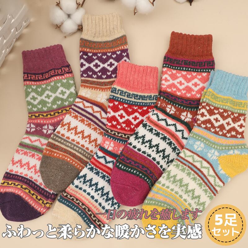 【5足セット】 暖かい 靴下 カラフル ソックス ふわふわ リブ編み 冬靴下 足元快適 ファッション おしゃれ靴下 温かい 必需品 耐久性 長持ち ふわっと 脱げにくい 冬 コーディネート | airastore